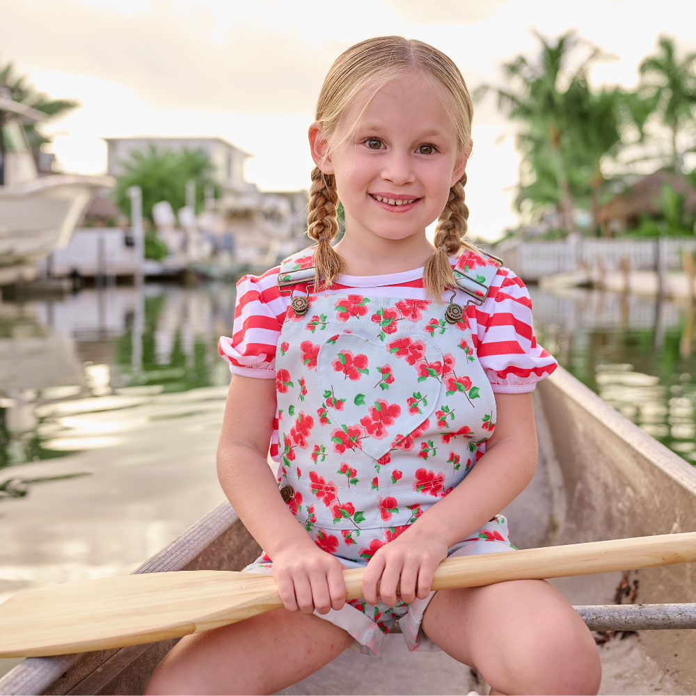 Be the talk of the town in these Ella Heart Overalls, featuring a vibrant bougainvillea design and an adorable heart pocket. Perfect for showing off your unique style and having fun in the sun!