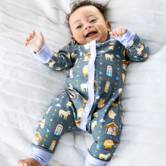 Baby Buttflap Pajamas - Blue Christmas Tree Holiday Lounge