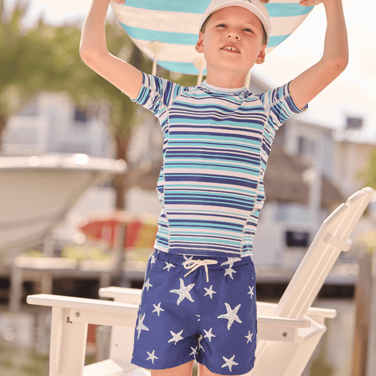 Short Sleeve Rashguard - Starfish Navy Stripe