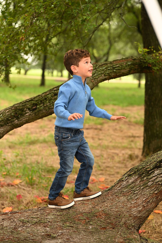 Mini Scott 3/4 Zip Pullover - Green Stripe