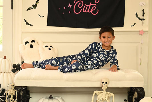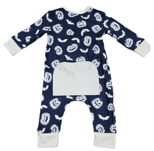One-Piece Buttflap Pajamas - Vintage Navy Halloween