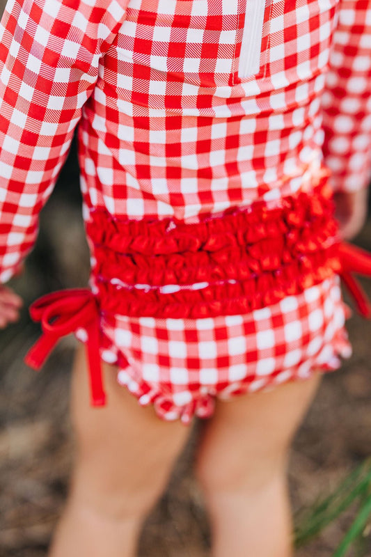 Swim Cover up - Pink Gingham Ruffle With Bows
