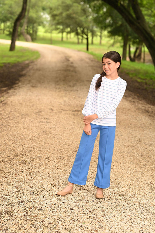 Amelia Peter Pan Puff Sleeve Tee - Blue Stripe