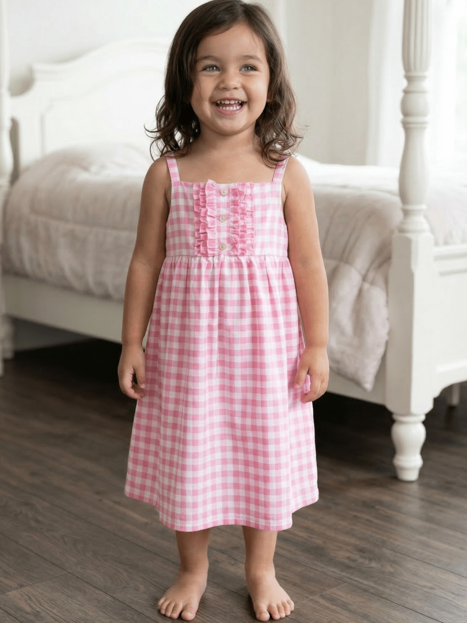 Snuggle up in style with this adorable pink gingham gown! Perfect for lazy days, sleepovers, or cozy nights in, this lightweight design keeps her comfortable from bedtime to breakfast. The classic gingham pattern adds a playful touch she'll love wearing again and again. Soft fabric and easy fit make it ideal for growing girls who want to feel cute and relaxed.