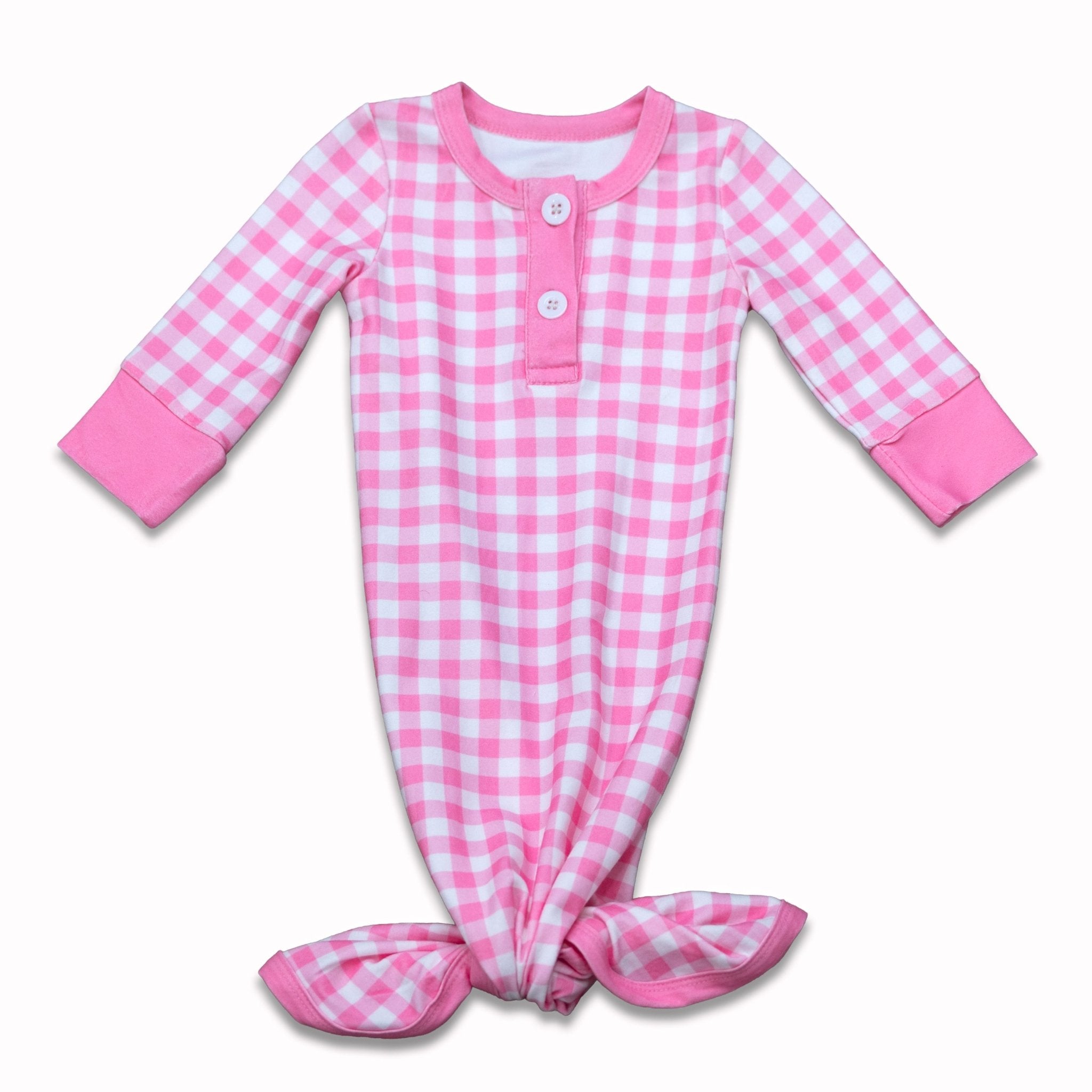 Wrap your little one in cozy comfort with this adorable, knotted gown in soft pink gingham. Perfect for bedtime cuddles or lazy mornings, the playful knot detail adds a charming touch while the breathable fabric keeps baby comfortable all night long. Easy to slip on and off for quick diaper changes, this gown is a nursery essential that parents love. Sweet dreams start here!