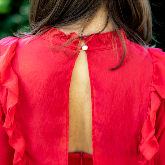 Evelyn - Holiday Red Long Sleeve Ruffle Dress