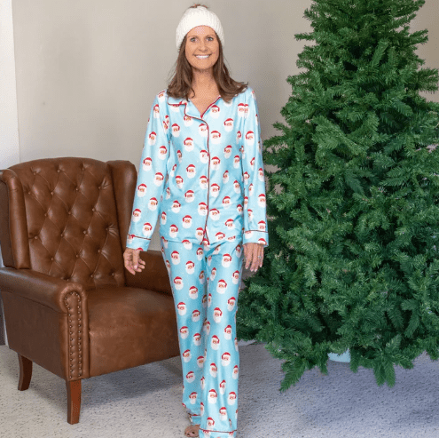 Adult Button Down Pajamas - Vintage Santa Holiday Lounge