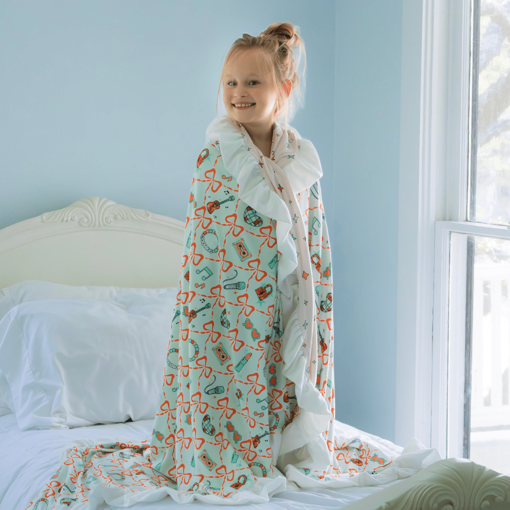Wrap your little star in cozy comfort with the Blanket Bows - Backstage Pass. Perfect for girls who love to shine, this soft blanket adds a touch of fun and warmth while imagining backstage adventures. It’s the ultimate companion for snuggling after a big performance or any day when comfort takes center stage.