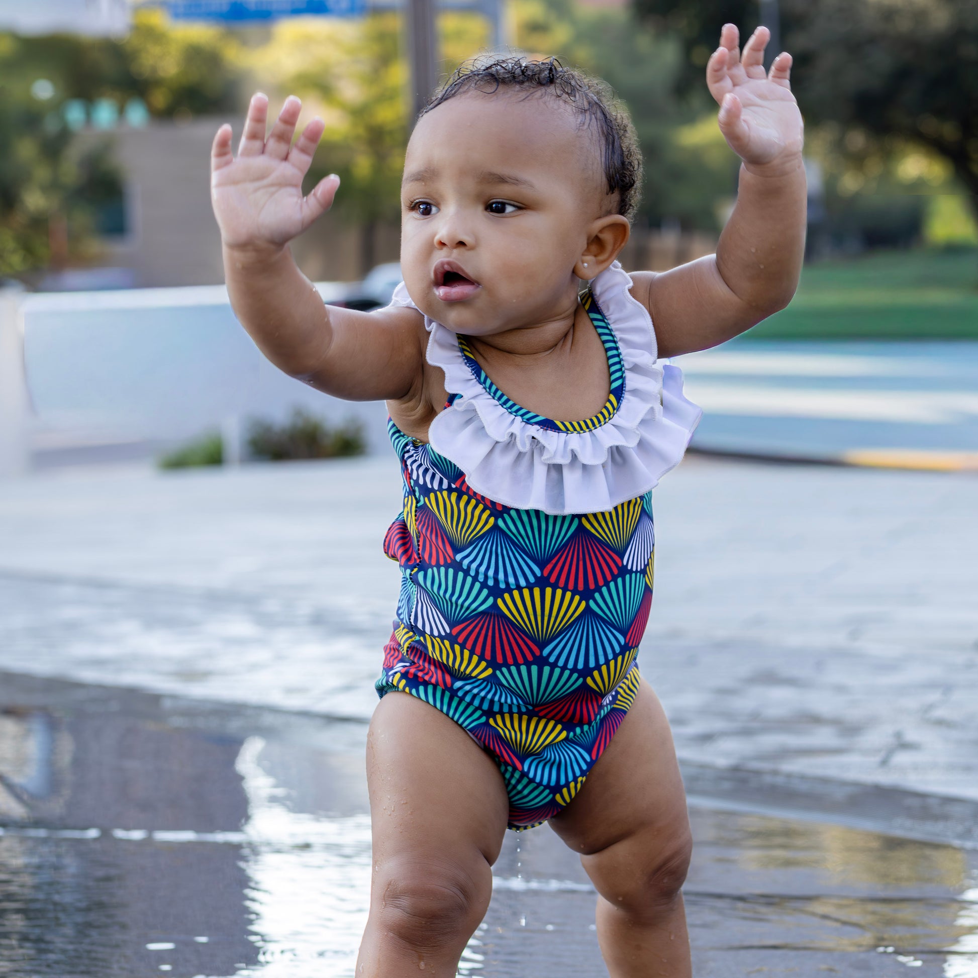 Make a splash with the Bow Back Swimsuit in Shells! This playful swimsuit features a charming seashell pattern and a cute bow at the back, perfect for kids who love fun under the sun. Designed for comfort and easy movement, it keeps your little ones ready for endless water adventures. Dive into summer with style and smiles!