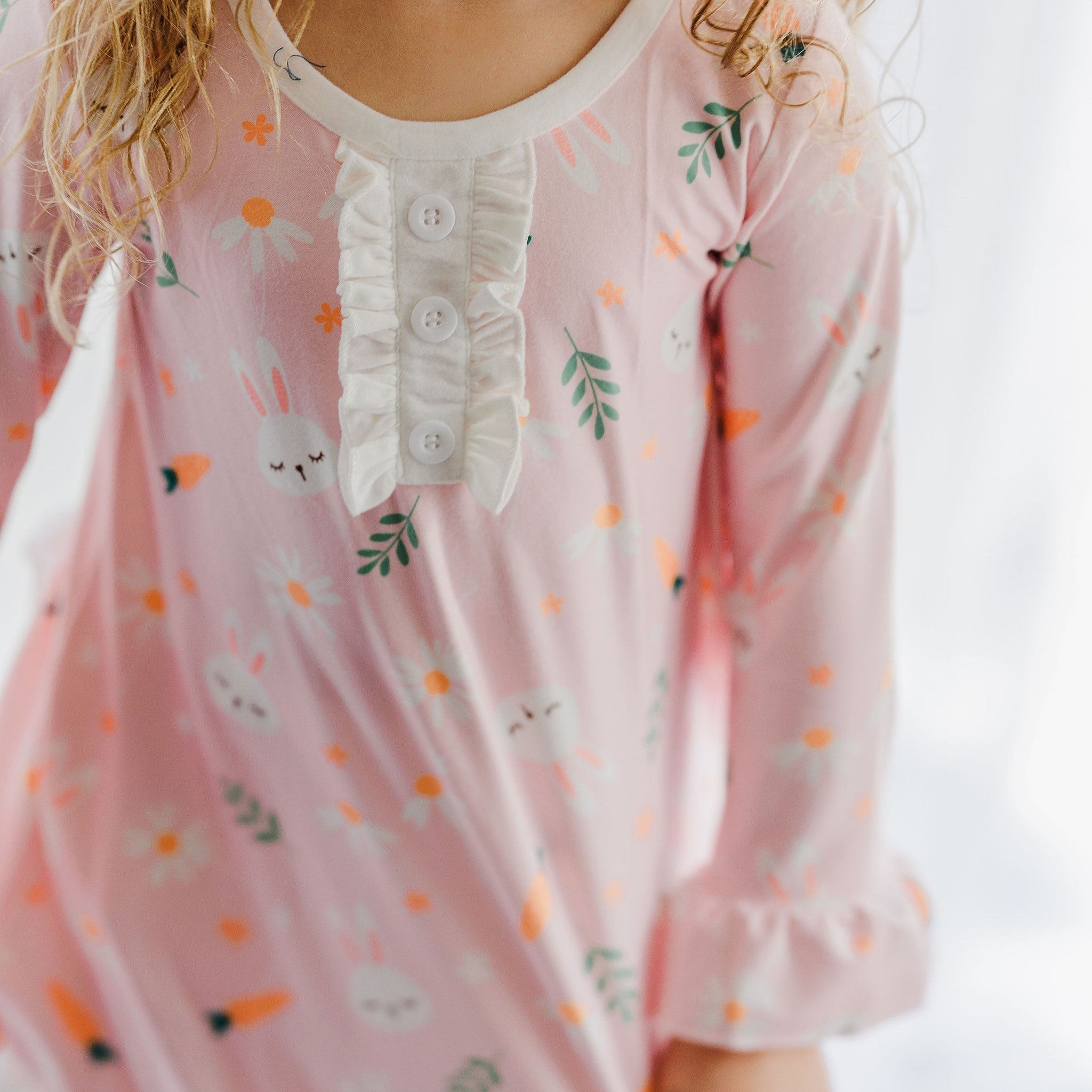 Your family will hop for joy when they see your Easter bunny wearing this cute and comfy gown and bloomers set. The soft, Easter pink gown is perfect for lounging around the house with its sweet and stylish design. Make your Easter extra special this year!