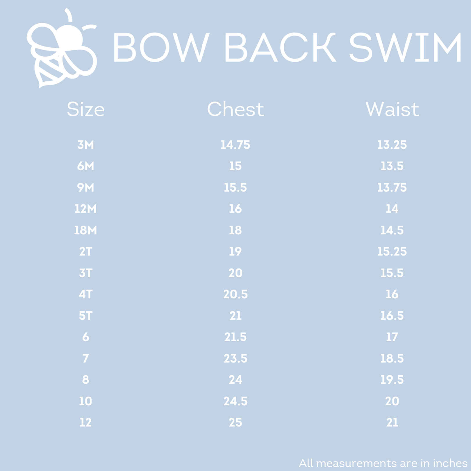 A summer classic with green checks on white. This traditional one piece girls’ suit has a solid green ruffle at the yoke, and a stylish bow in the back which makes it easy to take off and on. Mix and match for a family swim ensemble.