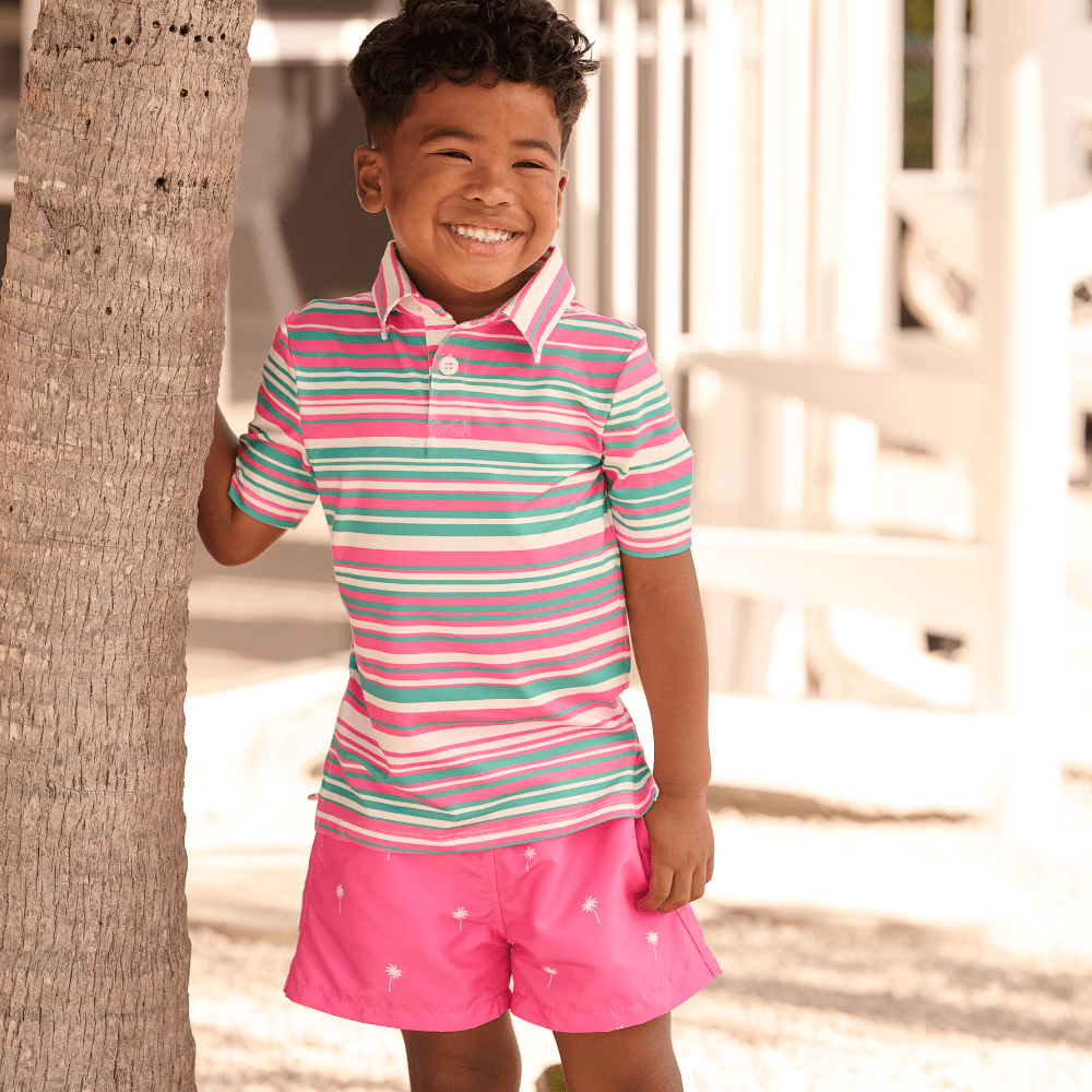 Step into summer with our Kyson Pocket Shorts for boys in our new Palm Trees on Pink design! These shorts offer comfort and style for all your summer fun. Perfect for any adventure, whether it's at the beach or just hanging out with friends. Get ready to make a statement with these quirky and playful shorts!