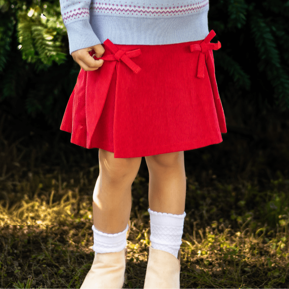 Bring festive cheer to her holiday wardrobe with the Margot Red Bow Skirt in Winterberry Red. This playful skirt features a charming bow detail that adds a touch of whimsy, perfect for twirling at family gatherings or holiday parties. Crafted for comfort and style, it’s an ideal choice to make her celebrations bright and joyful.