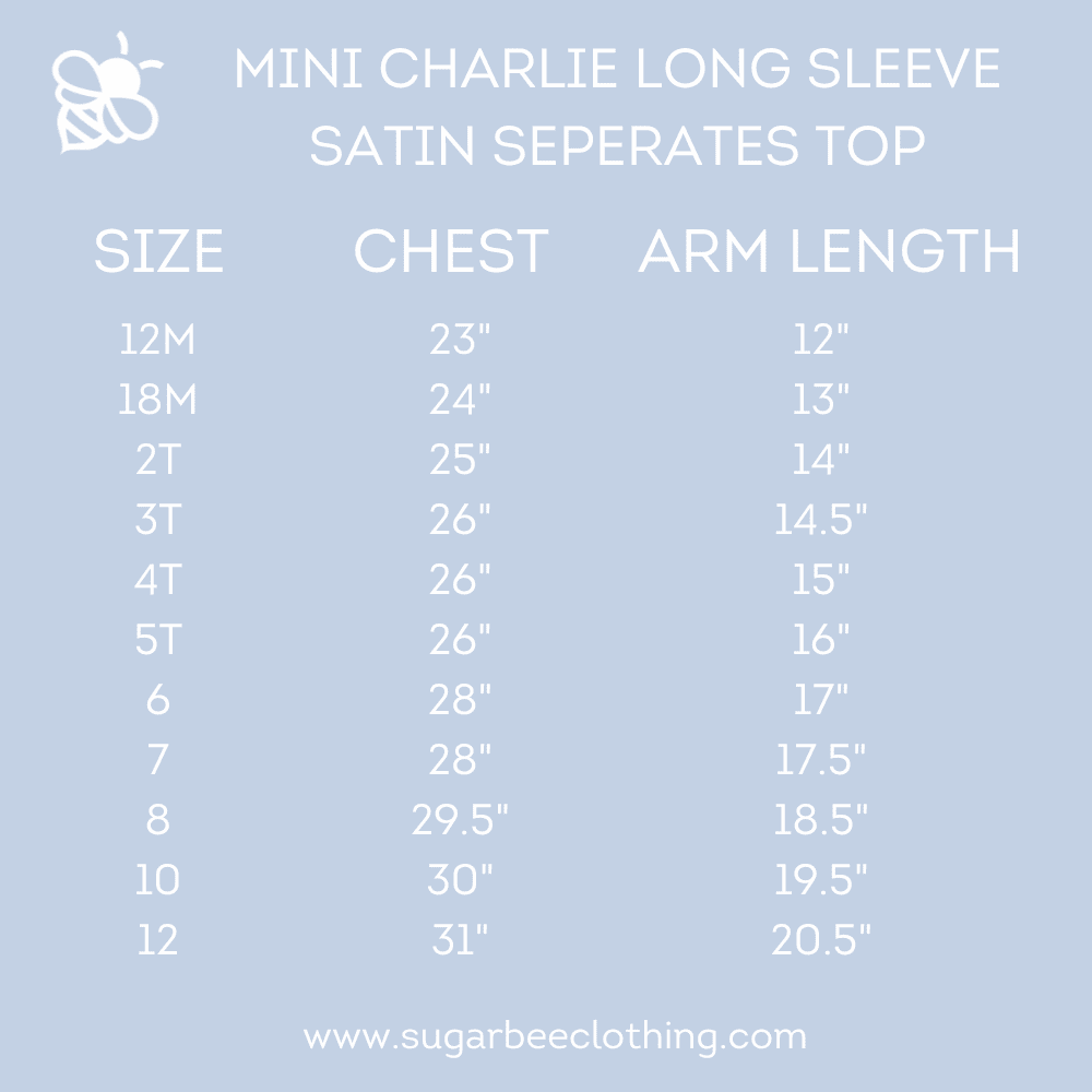 *Satin Separates in sizes 6-12 run one full size smaller. Sizes 12m-5t run true to size