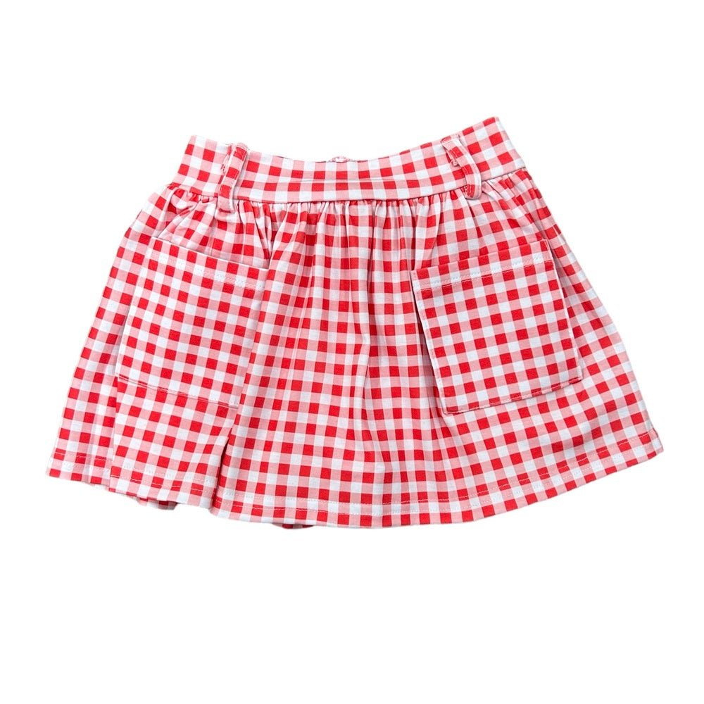 Get ready to rock your playful style with our Pocket Skort in Red Gingham! Perfect for school or play, this skort features pockets for all your essentials. Say goodbye to boring skirts and hello to the ultimate combination of fashion and function. Add some fun to your wardrobe now!