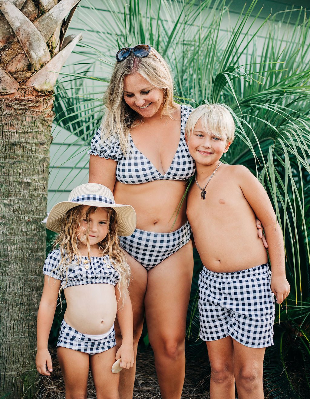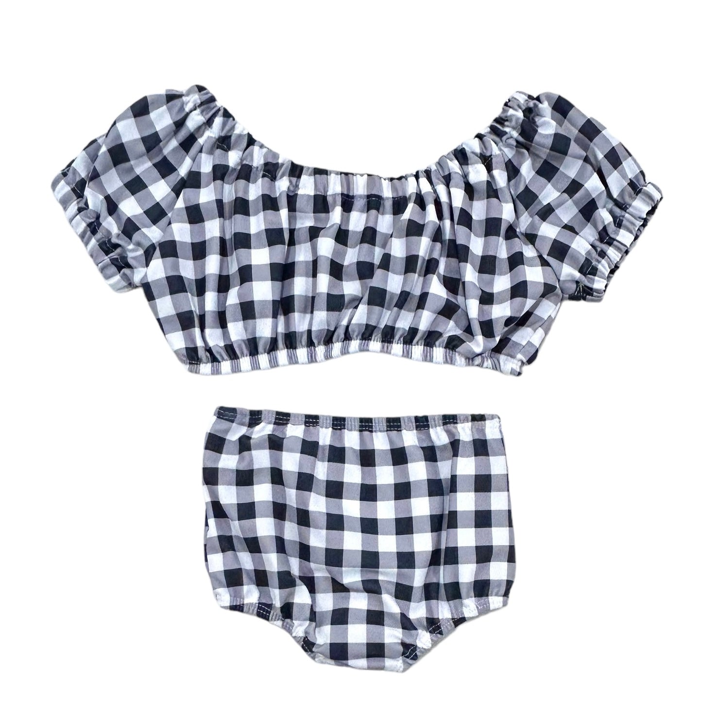 The Retro Bikini in Black Gingham is perfect for your little girl. This classic design features a black gingham pattern that exudes retro charm. Made from high-quality materials, it provides ultimate comfort while also being stylish. Dress your daughter in this bikini for a day at the beach or pool, and watch her rock the retro look.