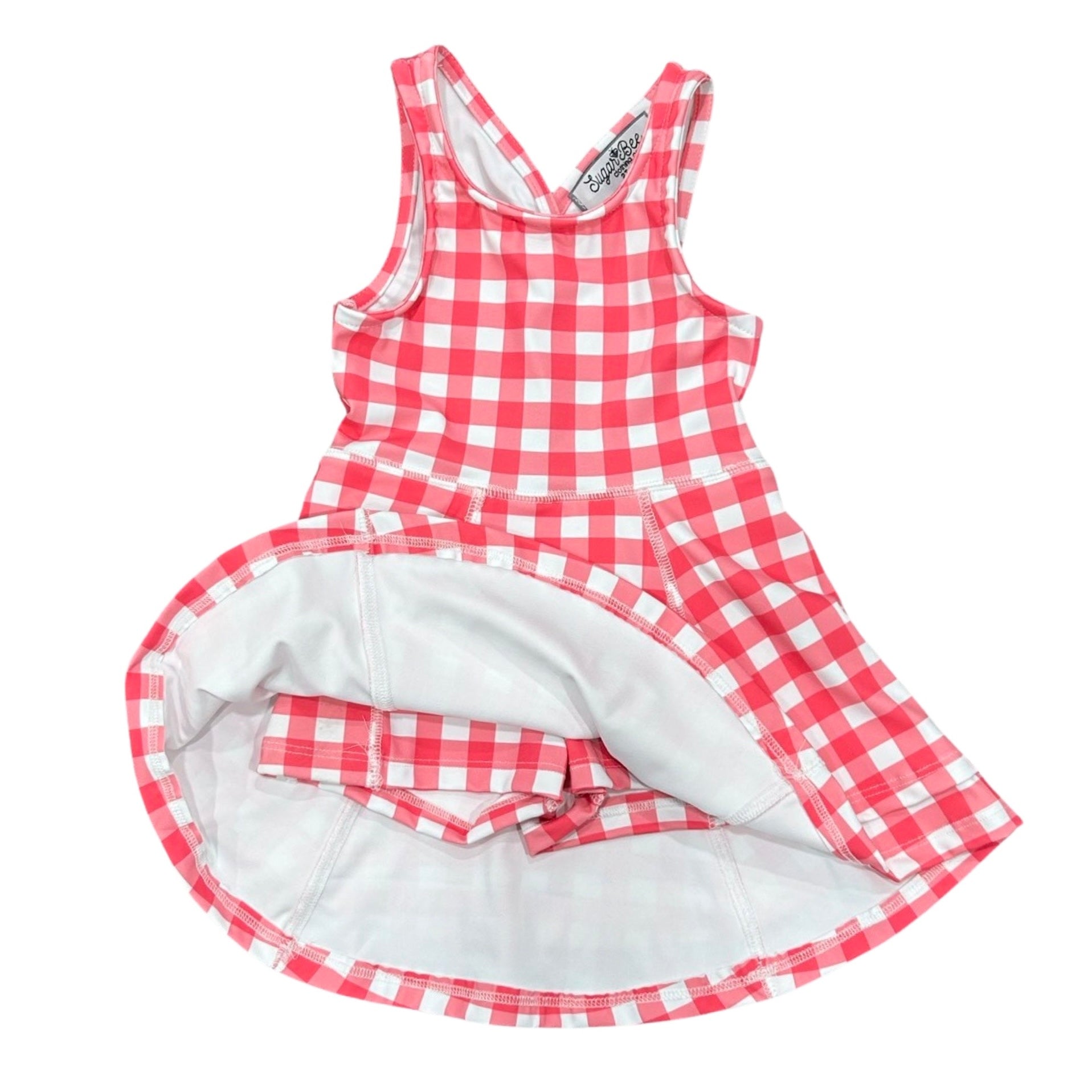 Serve up some style in our stretchy, fun Ruffle Tennis Dress. This large red gingham dress is not only athletic, it's downright cute. Perfect for a playful game on the court or a casual day out. (Score some points in style!)